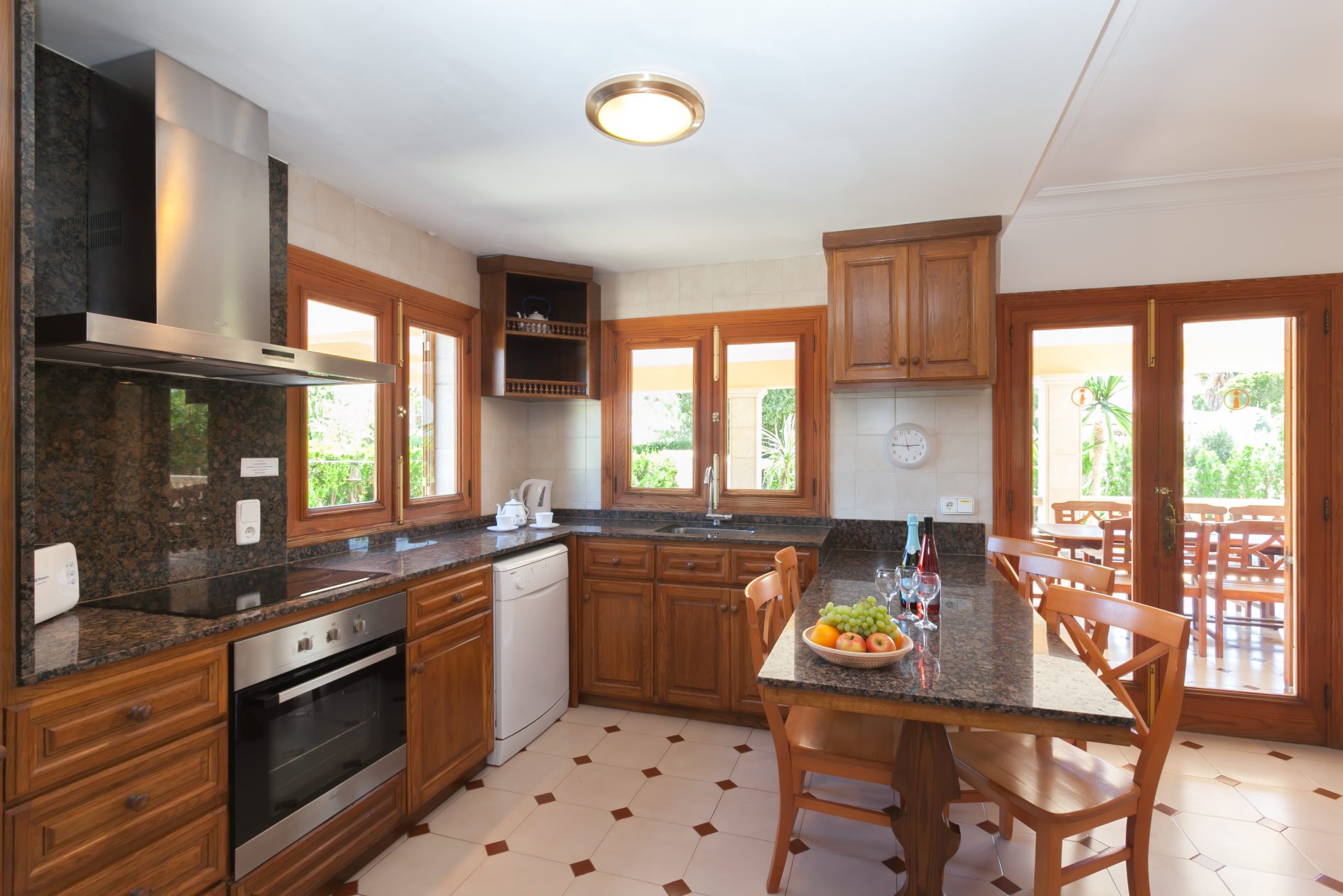 La cuina independent, de gas, està equipada amb microones, rentaplats i cafetera.