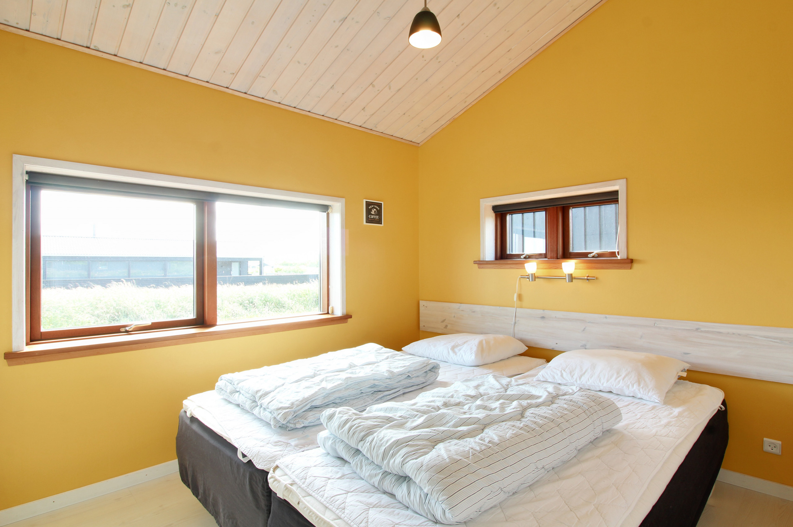 Der er i alt 4 soveværelser. Sovepladserne fordeler sig på: 8 sovepladser i dobbeltsenge. 2 sovepladser i enkeltsenge. 2 af disse sovepladser befinder sig på husets hems.