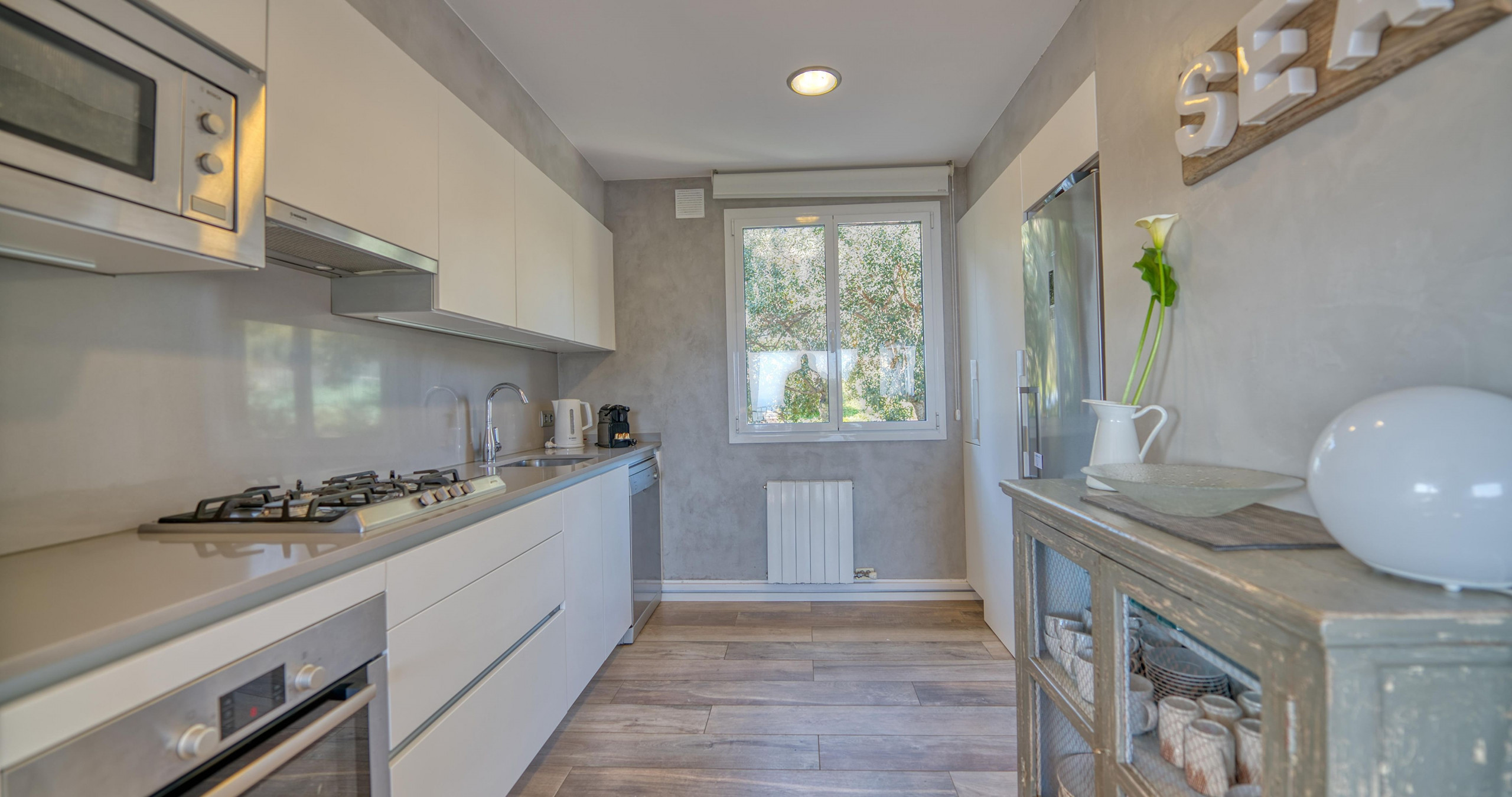 Tilbyder kamin, strygejern, internet (wifi), varmepumpe, aircondition, swimming pool fælles, utildækket parkering til i bygning tæt på, 1 TV.