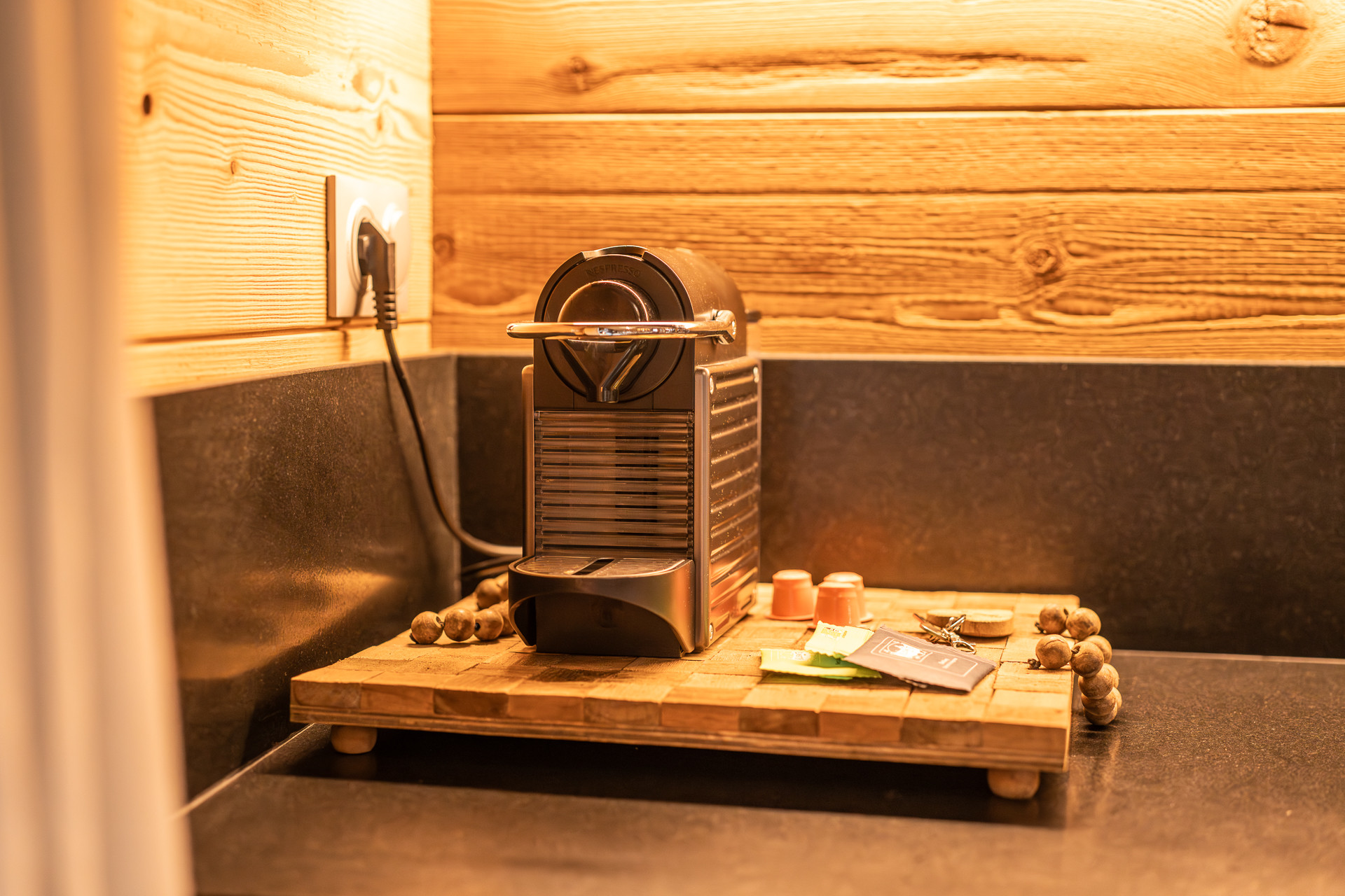 El alojamiento dispone de 4 plazas para dormir, con una cama de matrimonio en la planta baja y dos camas individuales en el altillo, permitiendo una estancia agradable para hasta 4 personas. El interior está equipado con radiadores eléctricos y una estufa de pellets que aportará un ambiente suave, romántico y acogedor durante las noches frías.