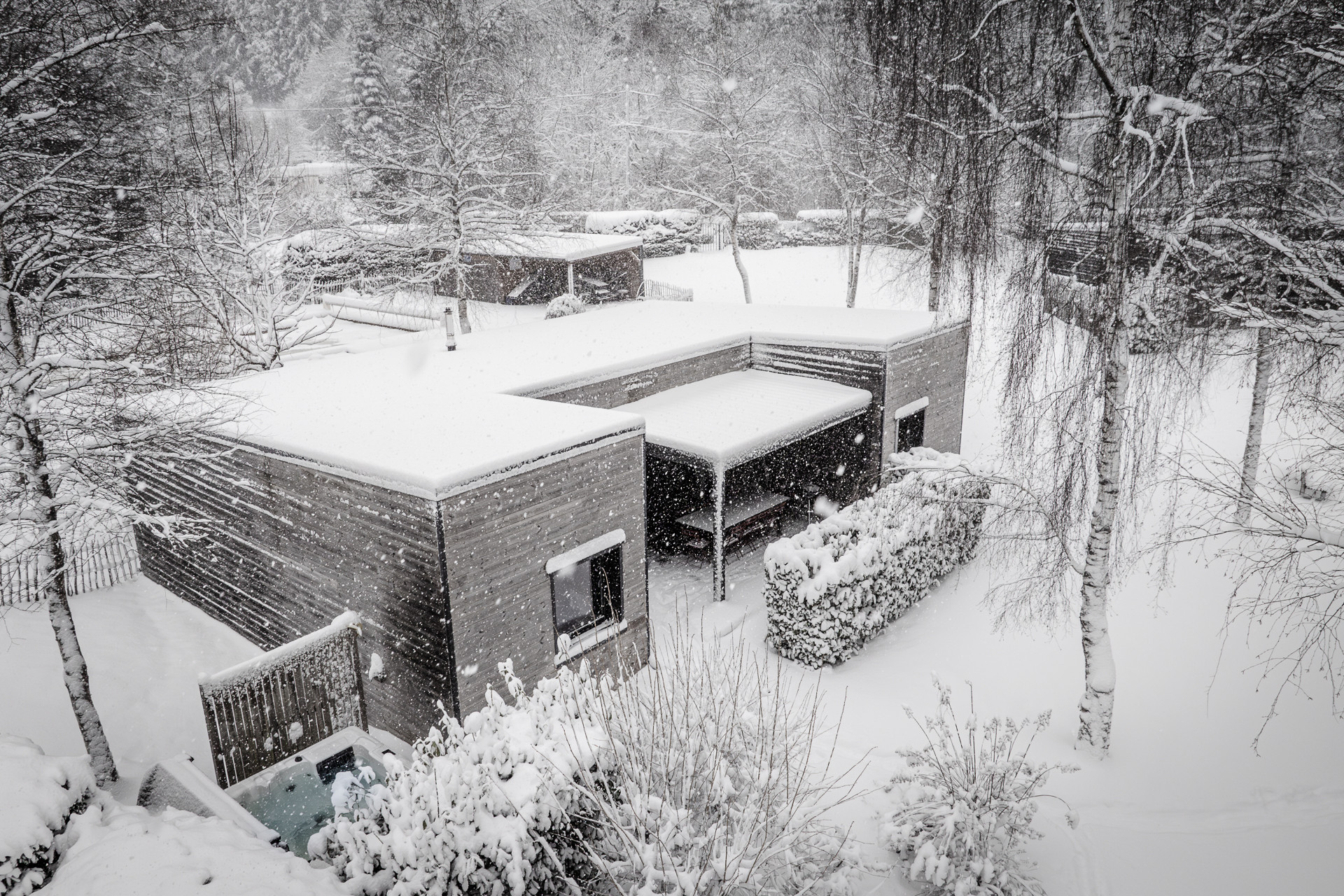 À l'extérieur, profitez de votre spa privatif à découvert, d'un jardin avec mobilier de jardin et barbecue, d'une terrasse de 25m² offrant une vue imprenable sur les forêts. Un parking extérieur gratuit pour 3 ou 4 véhicules est disponible.