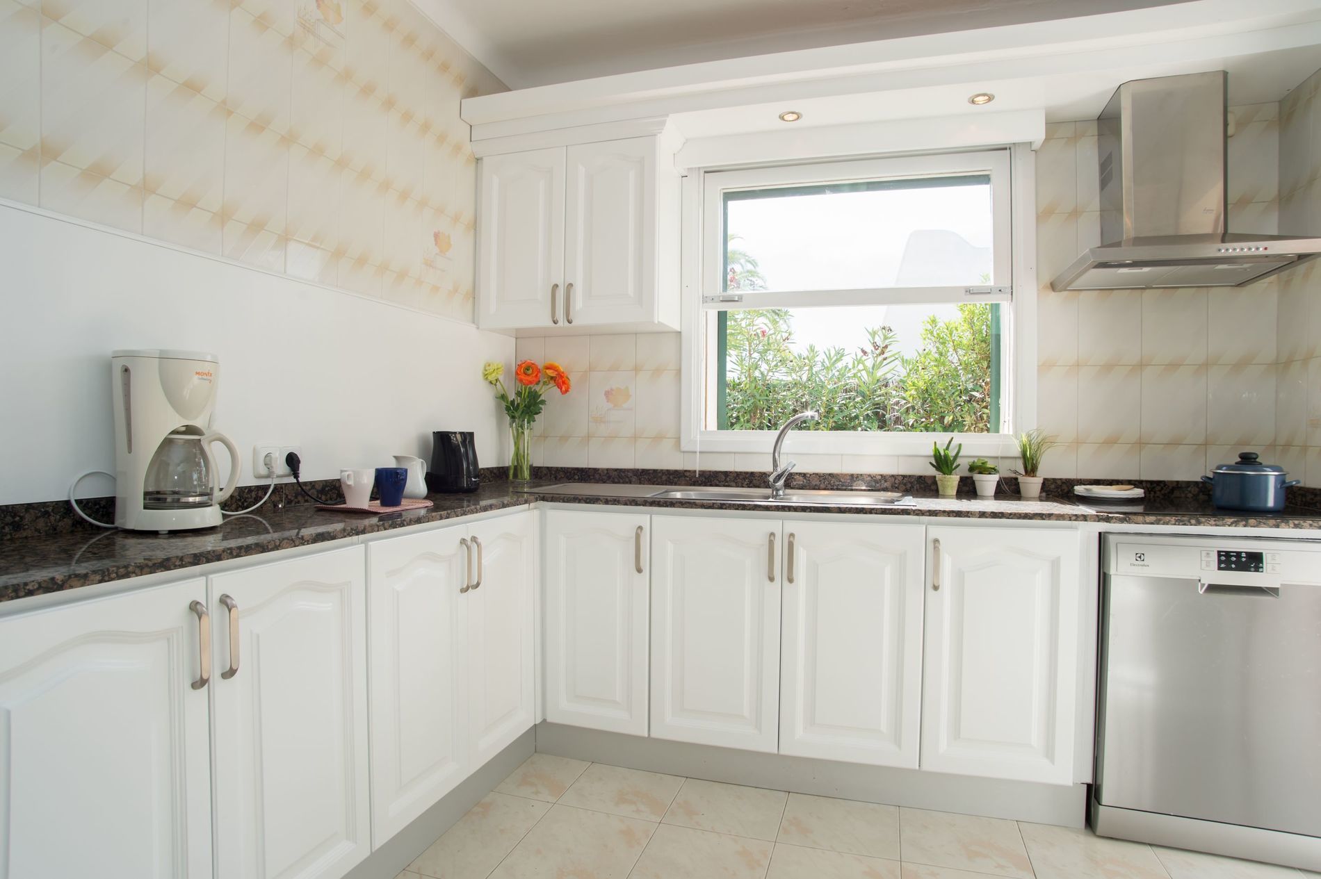 La cuisine indépendante, à gaz, est équipée avec micro-ondes, lave-vaisselle et cafetière.