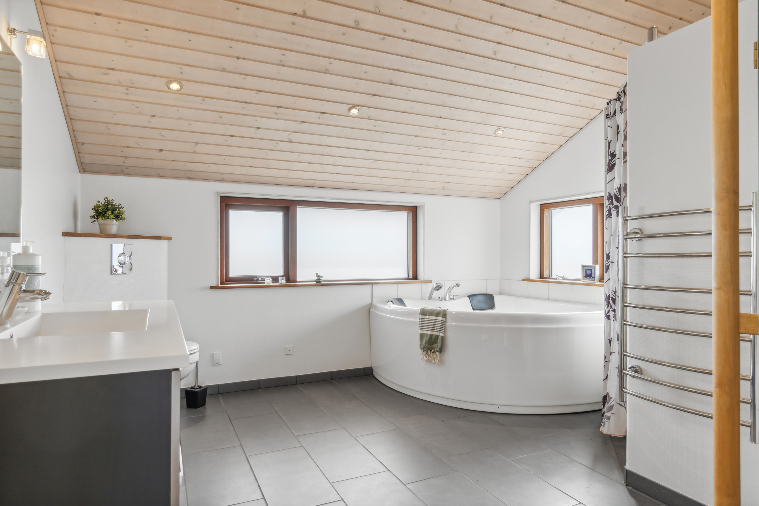 Det er 2 baderom med dusj og 2 toaletter. Det er varme i gulvet i 2 av baderom. I badstuen er det mulighet for å slappe av.