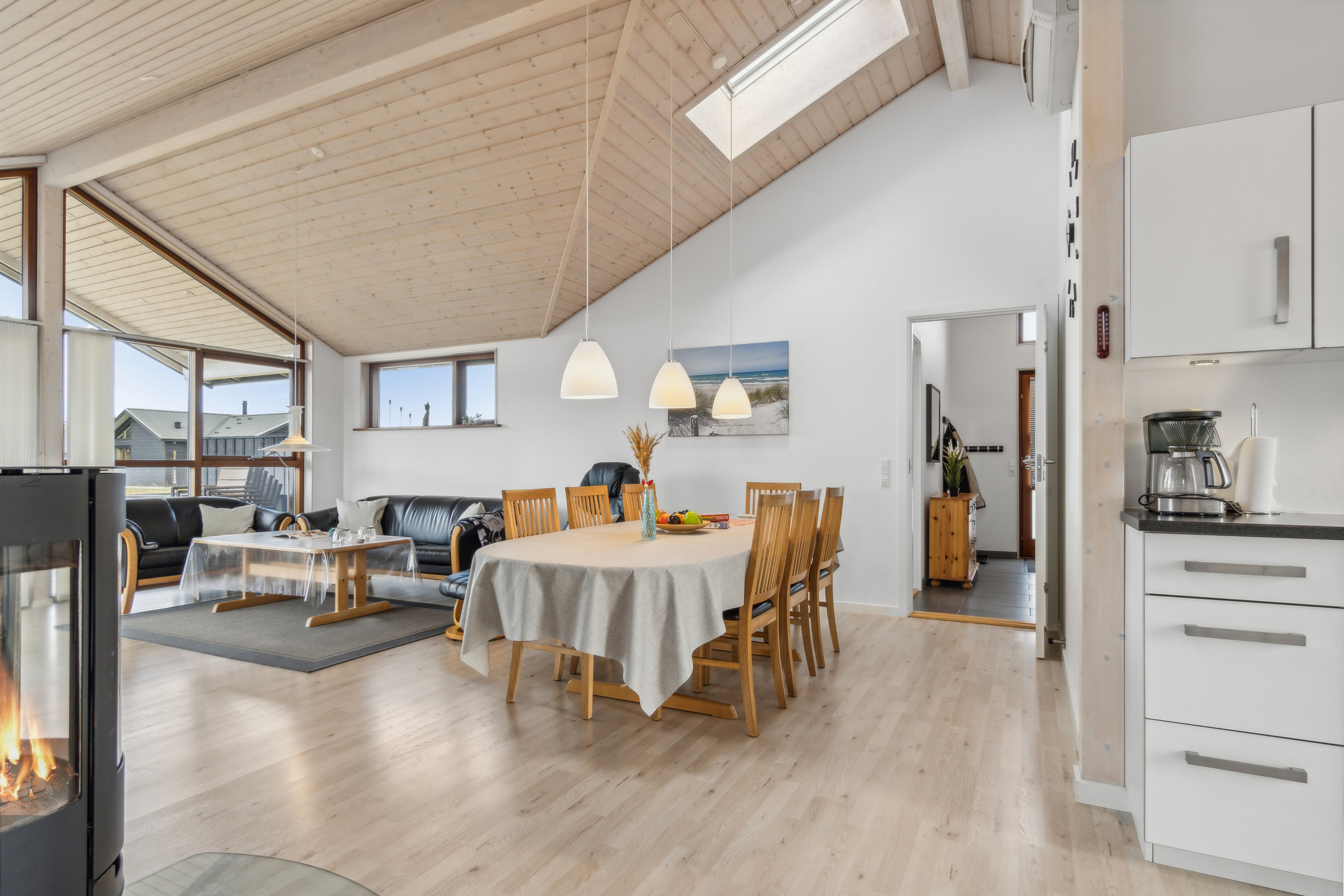 Kjøkkenet er utstyrt med 1 kjøleskap. Det er 4 induksjonskokeplater, varmluftsovn, mikrobølgeovn og oppvaskmaskin.