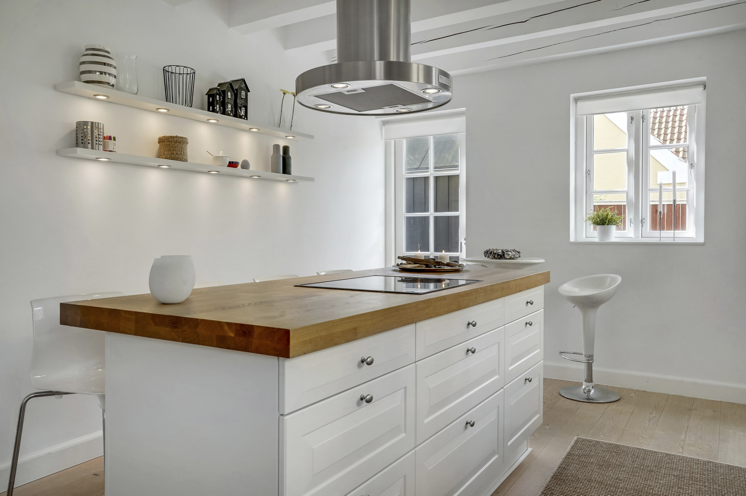 Kjøkkenet er utstyrt med 1 kjøleskap. Det er 4 induksjonskokeplater, varmluftsovn, mikrobølgeovn og oppvaskmaskin.