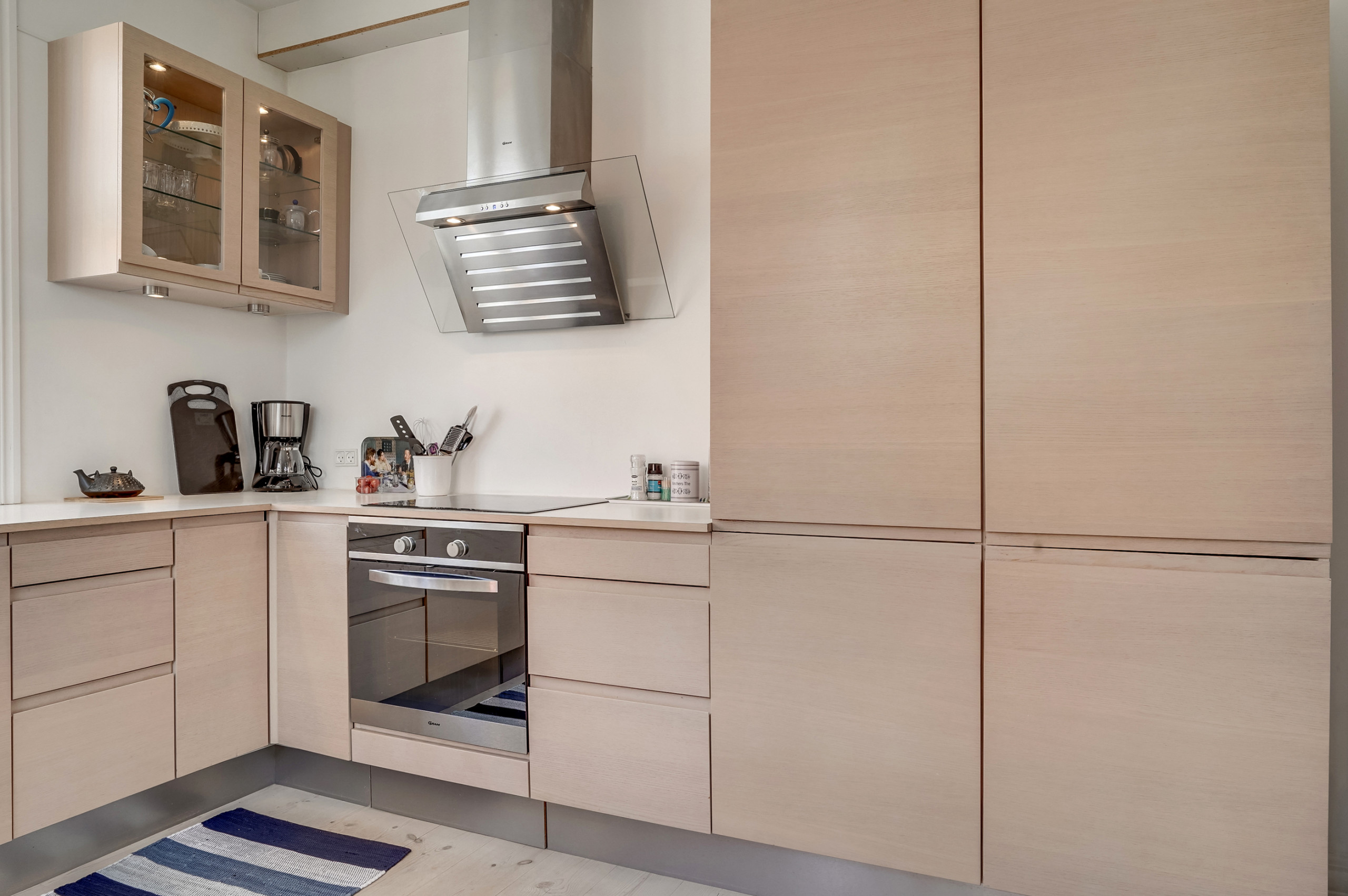 Kjøkkenet er utstyrt med 1 kjøleskap. Det er 4 keramiske kokeplater, varmluftsovn og oppvaskmaskin. Det er gulvvarme på kjøkkenet.