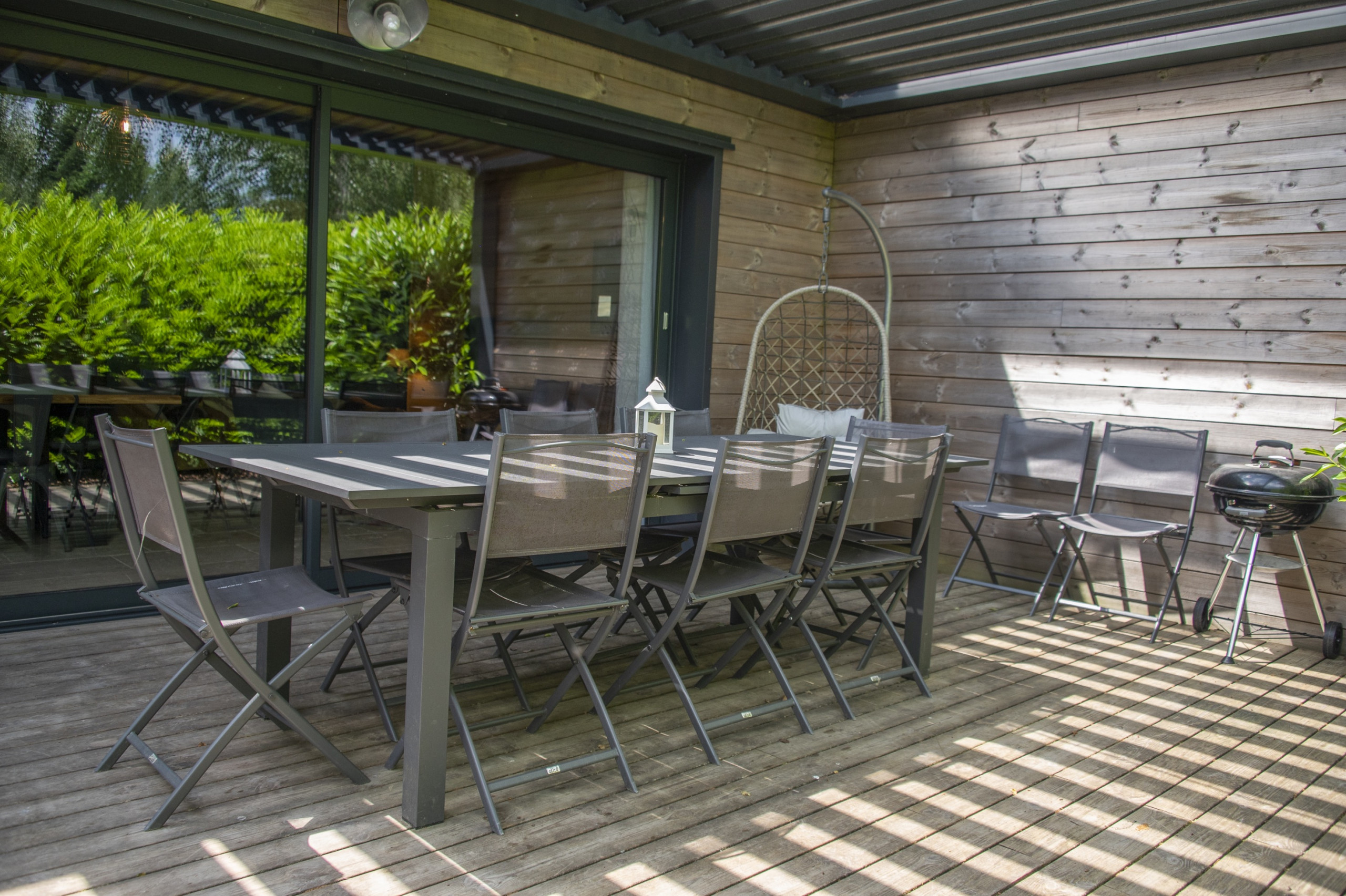 This 100m2 chalet offers 4 comfortable bedrooms with a total of 10 sleeping spaces: 3 queen-size beds and 4 single beds, capable of accommodating up to 10 people. For optimal comfort, if there are only adults, we recommend not exceeding 8 guests. The house has 2 bathrooms, one with a shower, one with a bathtub (with washing machine) and a separate toilet.