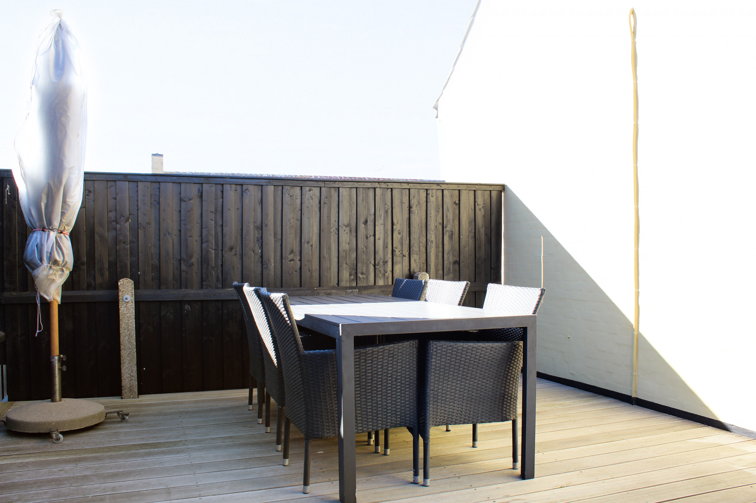 The holiday home is situated on a 479 m² garden site. The site is fenced in. Situated 900 m from the sea. Nearest shop is 200 m away. A 26 m² terrace belong to the holiday home. Hereof a total of 26 m² enclosed terrace. Barbecue at your disposal. Parking place by the holiday home.