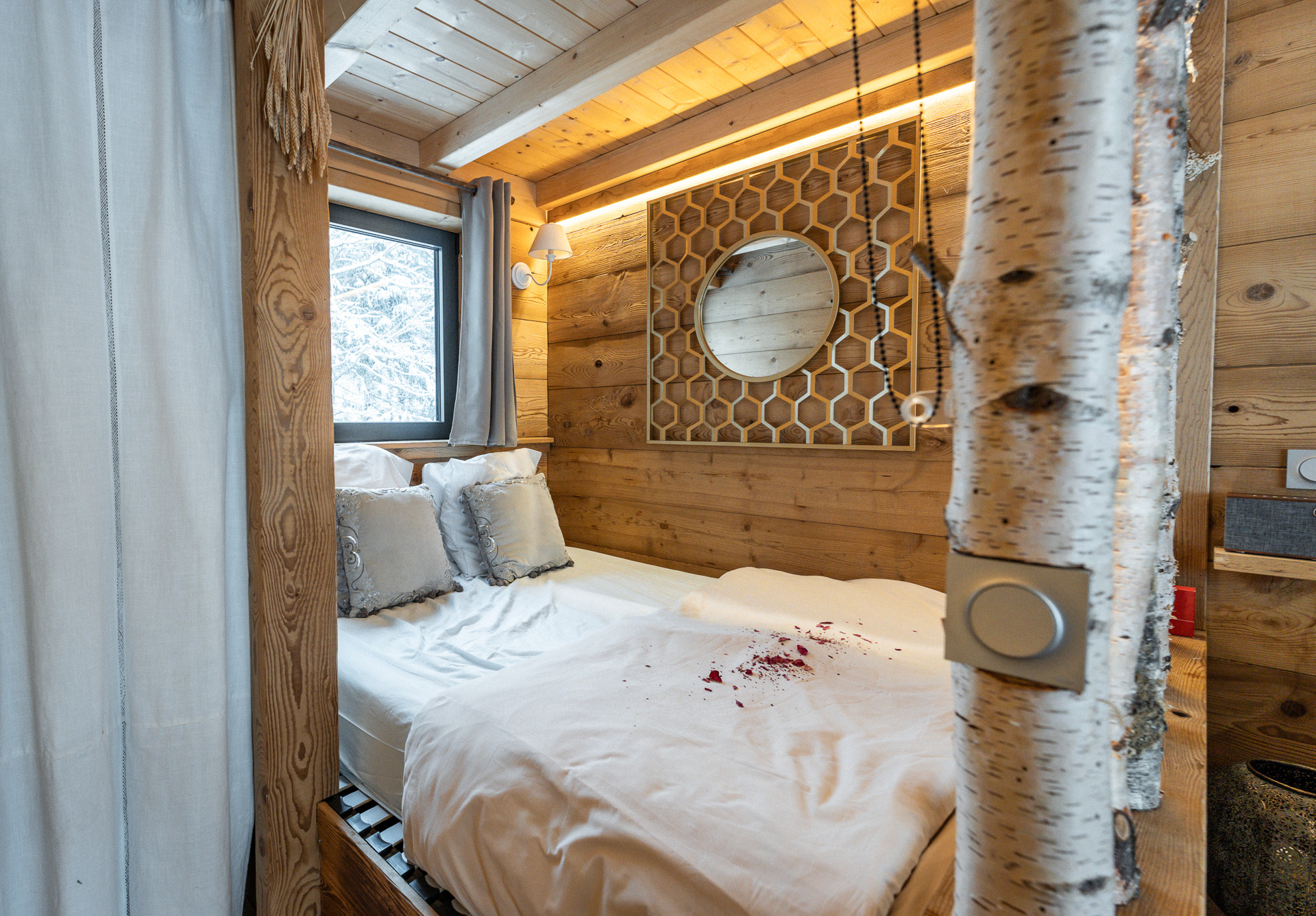 The chalet is tastefully-furnished, is modern, and is 323 ft². It hasmountainviews.